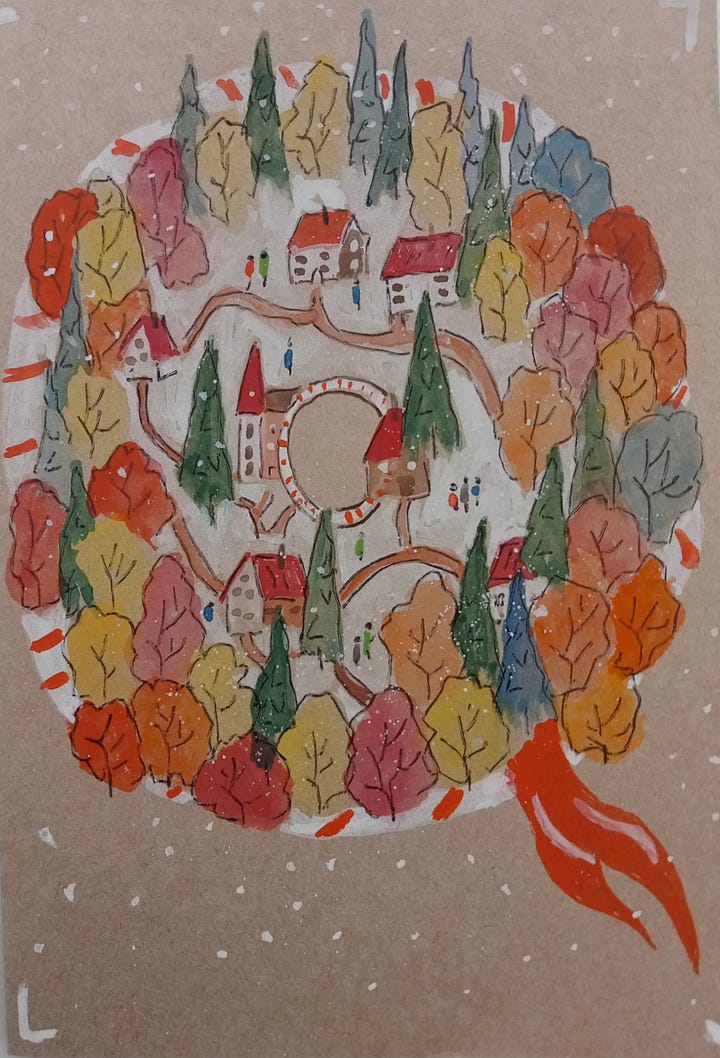J'ai choisi un brun plus foncé pour conserver l'esprit automnal et hivernal de la carte et je l'ai ajouté aux autres taches. J'ai également choisi une nuance de vert pour apporter une touche de contraste aux arbres.