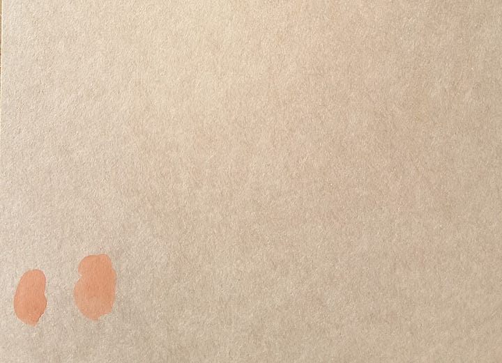 En parlant de photos incroyablement ennuyeuses, voici deux exemples parfaits ci-dessous. Mais bon, difficile de créer une tache captivante ! Parce que c'est exactement le but recherché. J'ai commencé avec une teinte brun-rougeâtre. Assurez-vous que votre pinceau soit humide, mais pas trop, et prélevez une bonne quantité de pigment dans le bloc ou le tube, si c'est ce que vous utilisez. En fait, il faut une couleur avec… du corps.