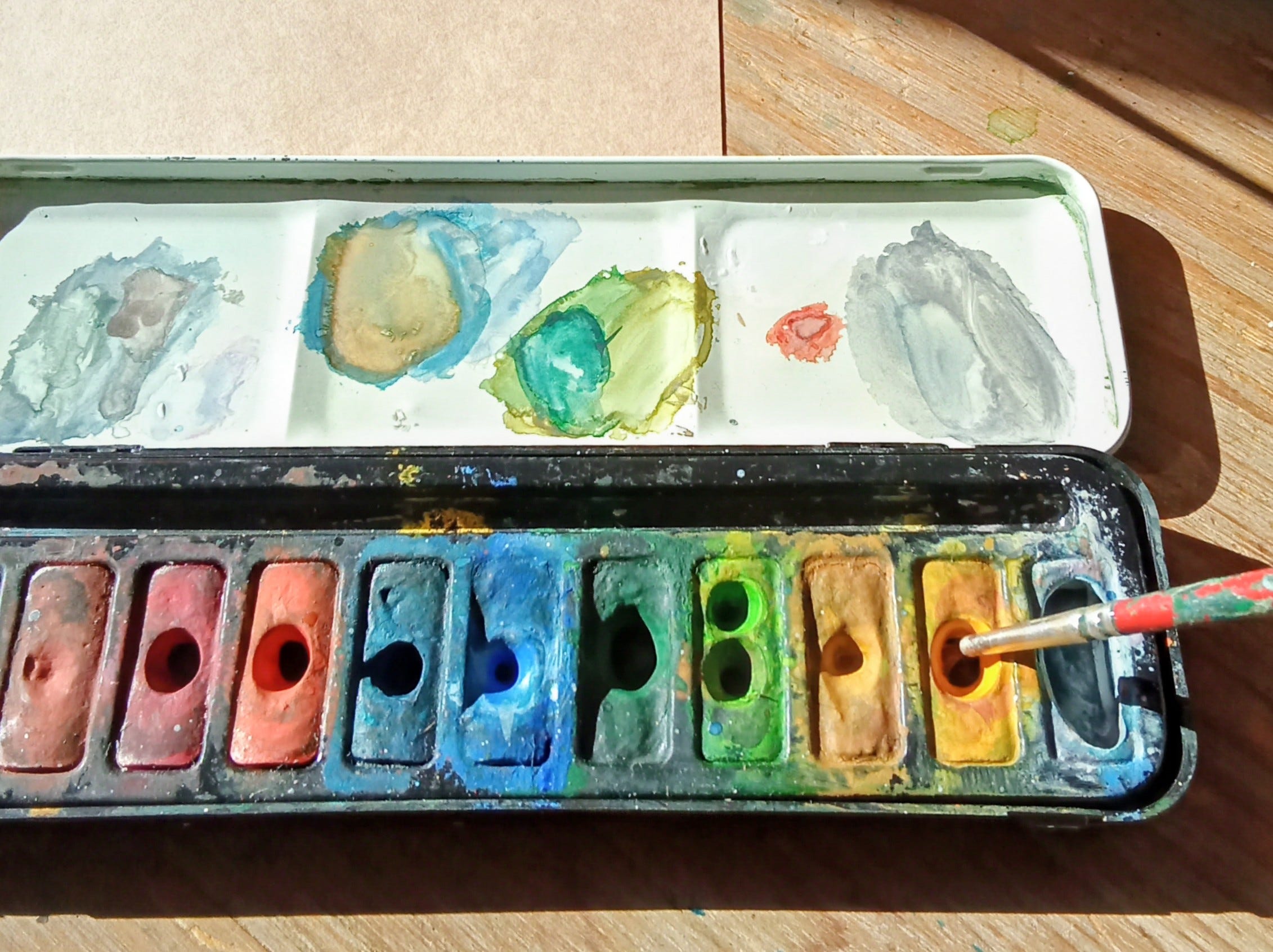Des aquarelles : comme vous pouvez le voir, j'en ai deux sets en stock, mais un seul suffira amplement.